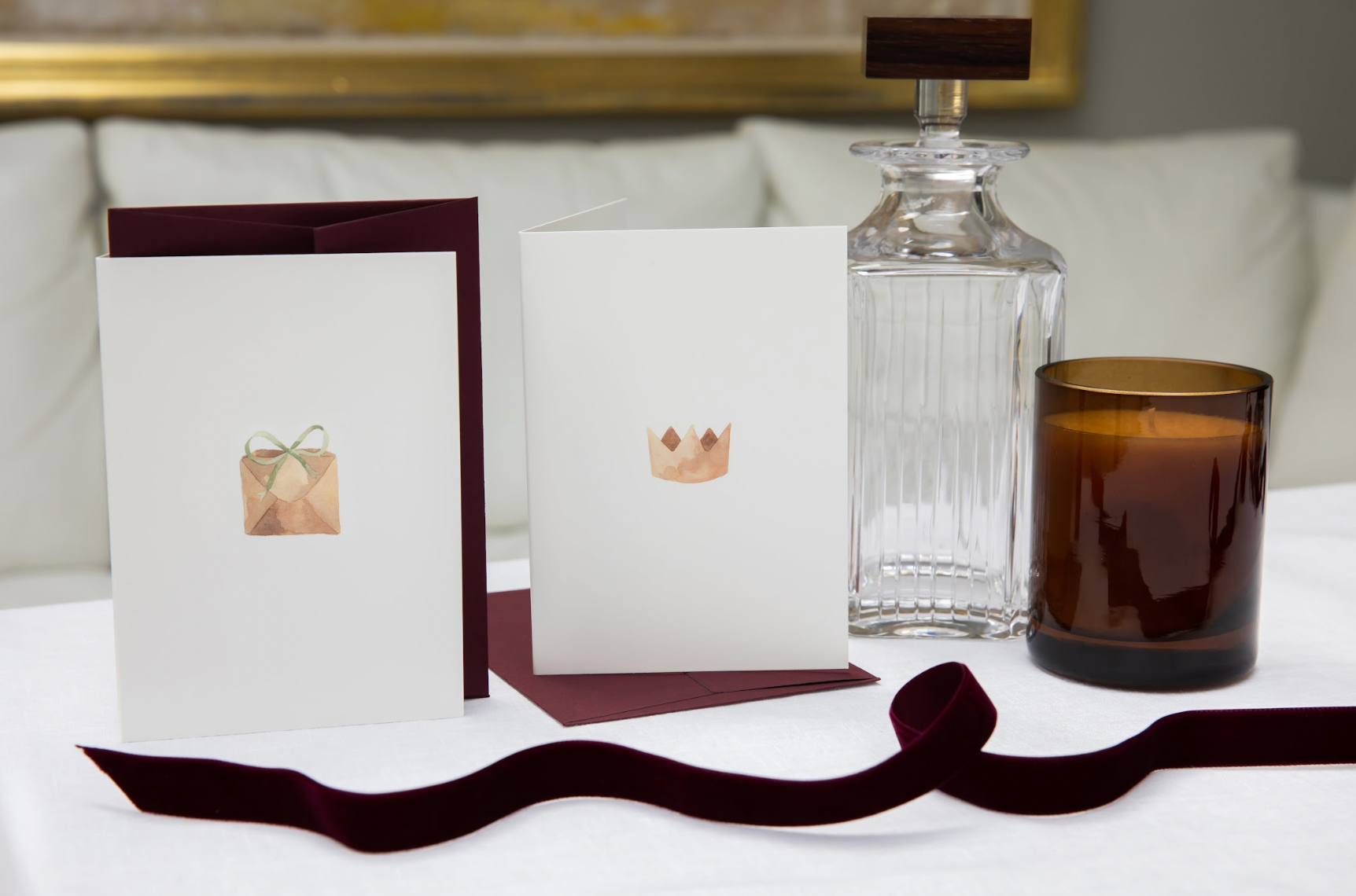 All of Memo's stationery is personalised and painted by our founder Alice at our London Studio. The illustrations which decorate our greetings cards are first sketched in pencil and watercolour before being printed on our signature thick card.